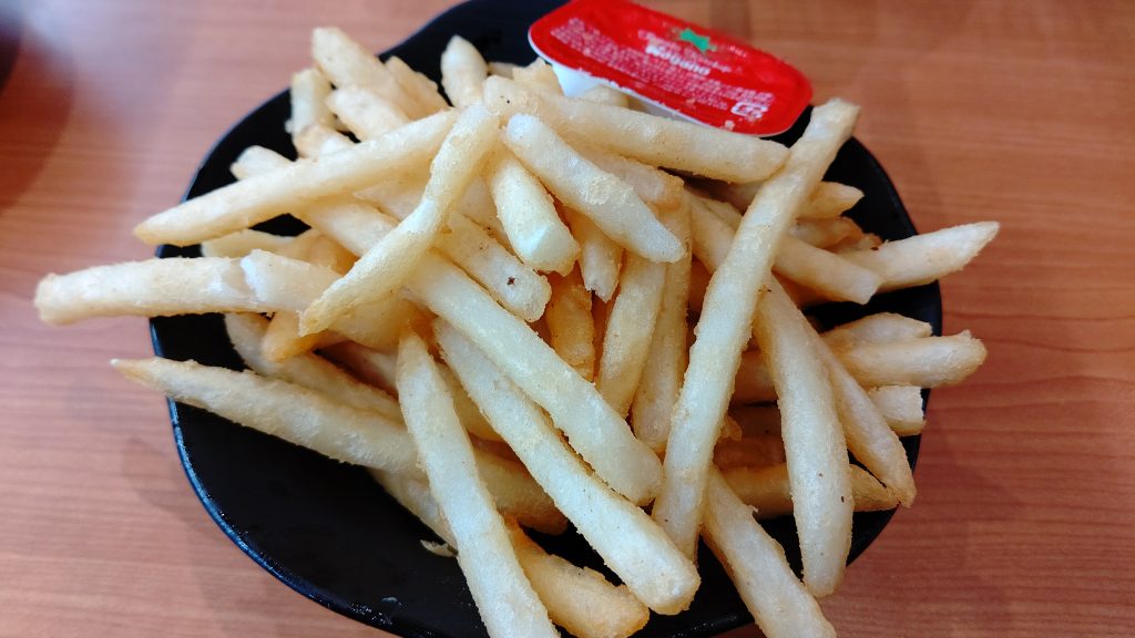そんなことはどうでもよく、店内でポテトチップをあげるという高い意識は、評価すべき挑戦と思いました。