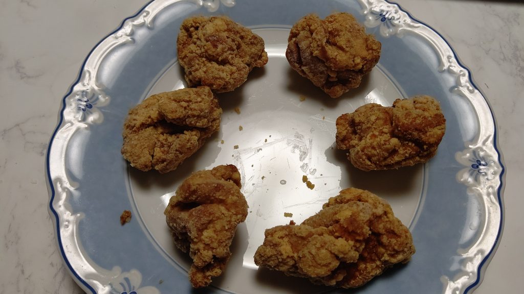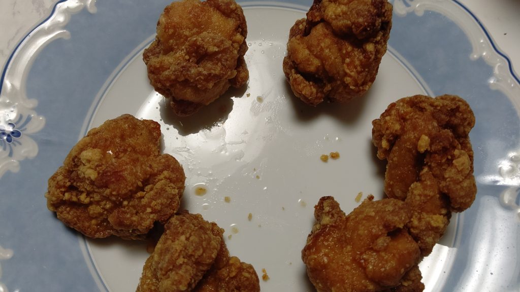 で、感想ですが、やっぱり揚げたてのから揚げのカリッと感に到達しないですね。