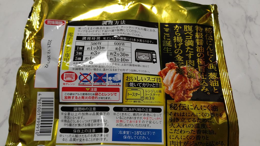 ちなみに、自宅で揚げるタイプのから揚げではなく、レンジでチンするタイプのから揚げをさします。