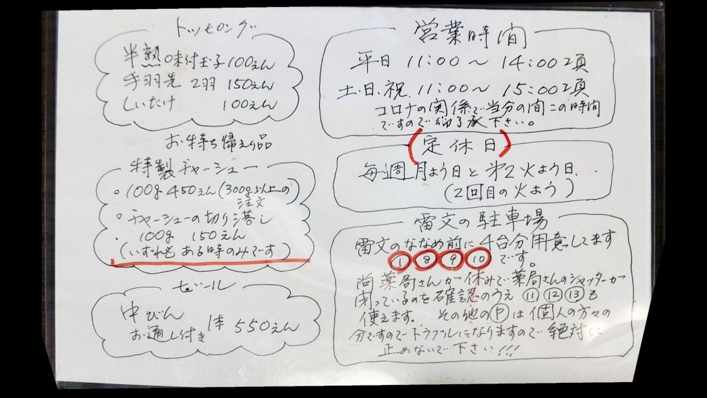 お持ち帰りのお持ち帰りのチャーシューも気になります。