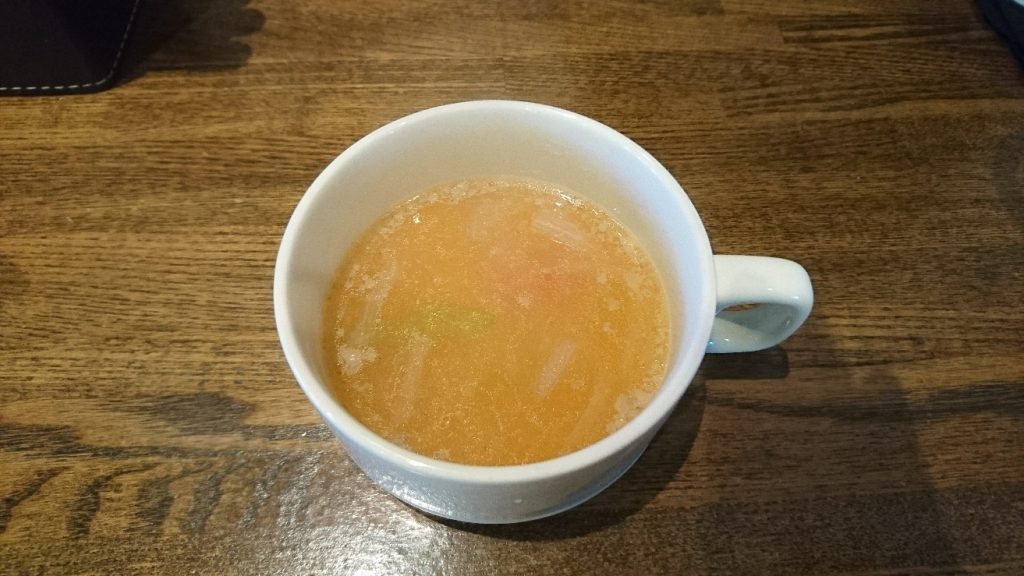 これは、コンソメスープですね。特別な特徴がない安心のコンソメスープです。